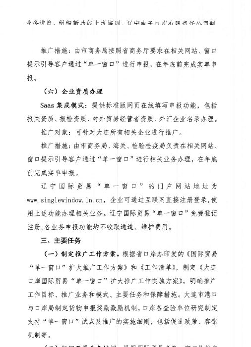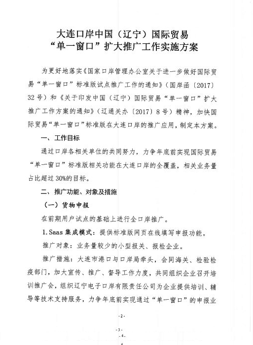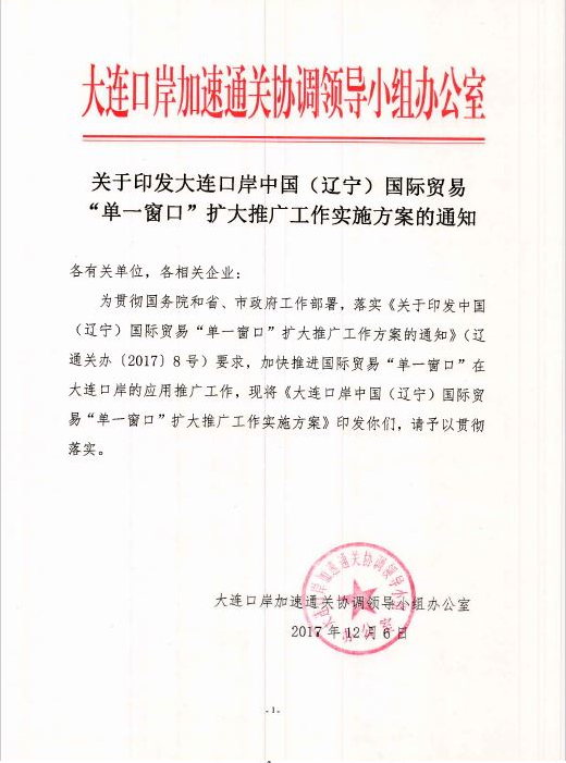 关于印发大连口岸中国(辽宁)国际贸易“单一窗口”扩大推广工作实施方案的通知
